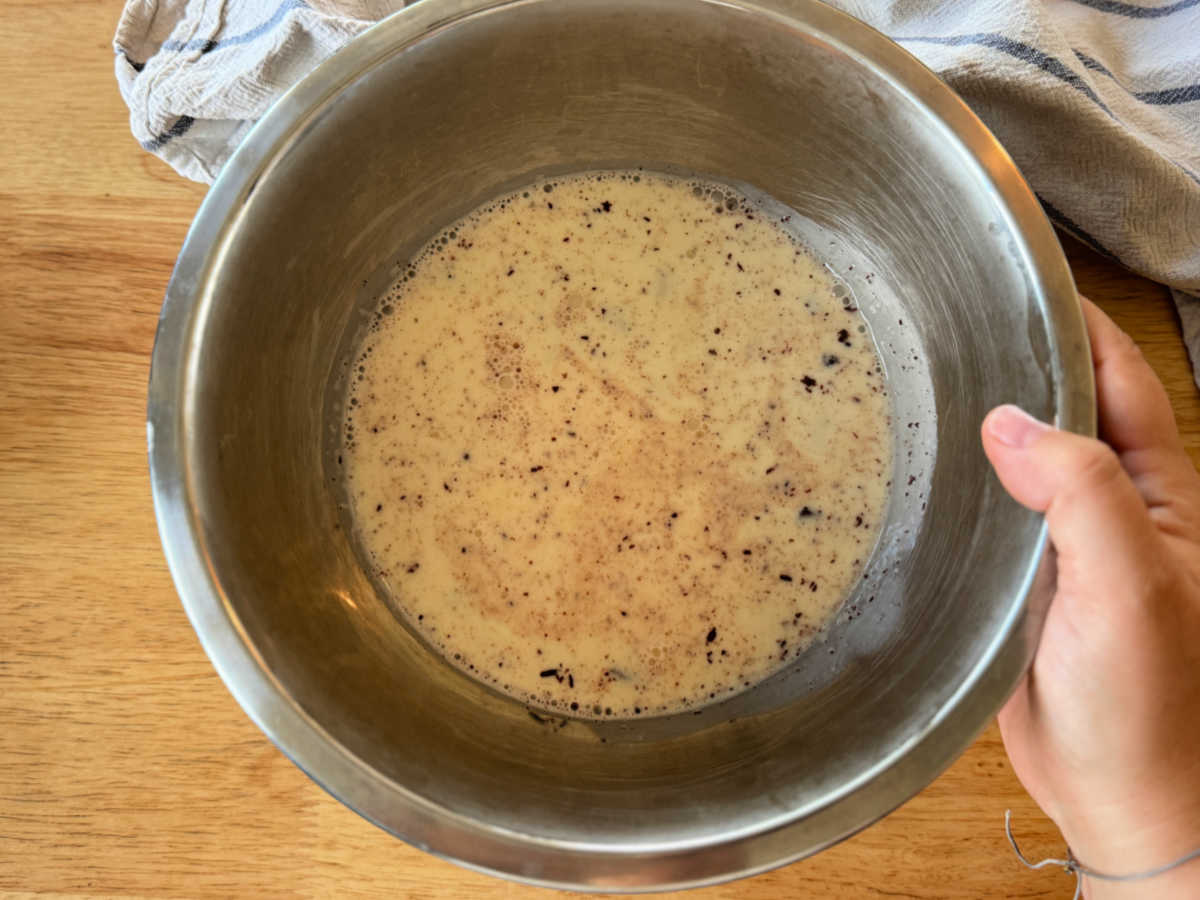 • מערבבים בעדינות בעזרת כף עד לקבלת תערובת אחידה ומבריקה. לא משתמשים במטרפה, כיוון שאנחנו לא רוצים להכניס אוויר לתערובת.