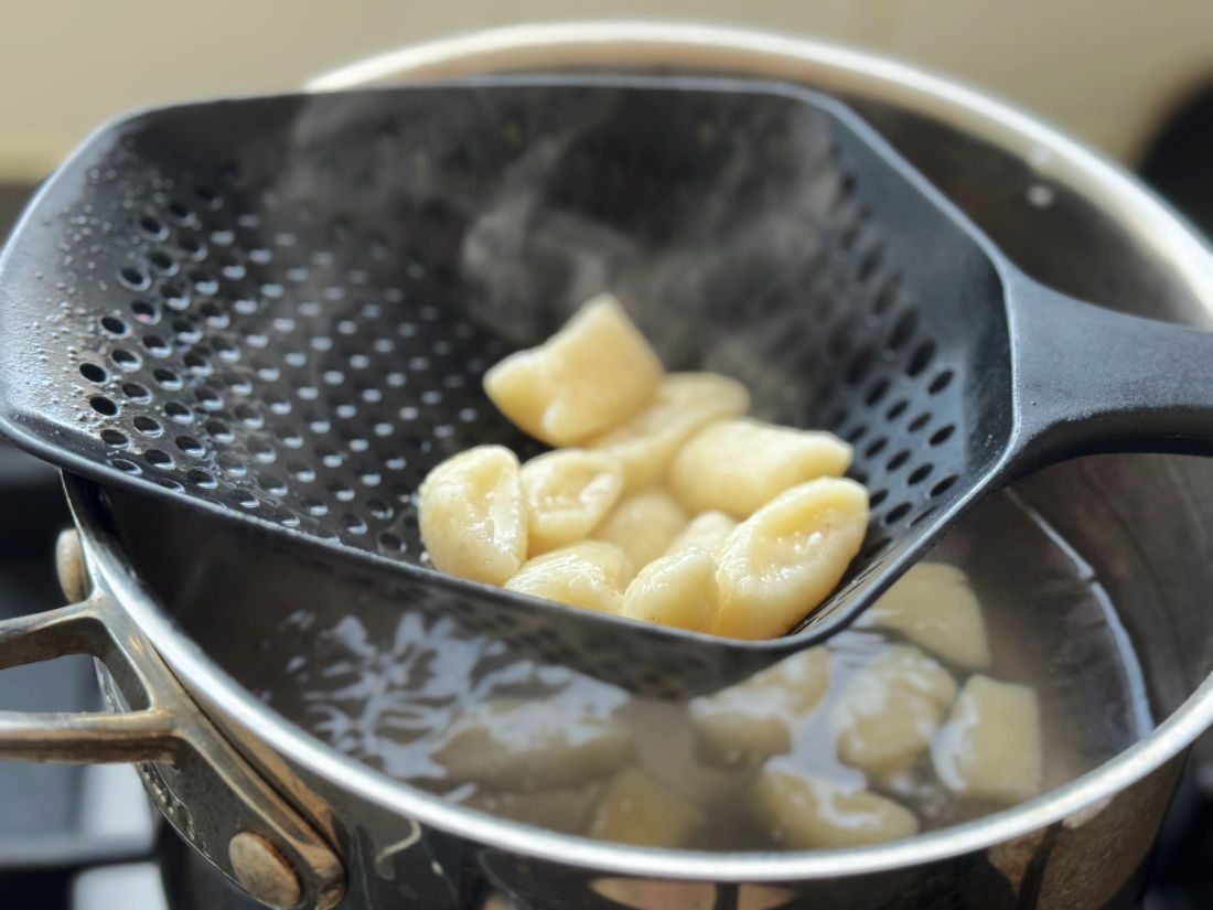 - מכניסים את הניוקי למים הרותחים, ממתינים עד שיצופו ומסננים אותם מהמים.