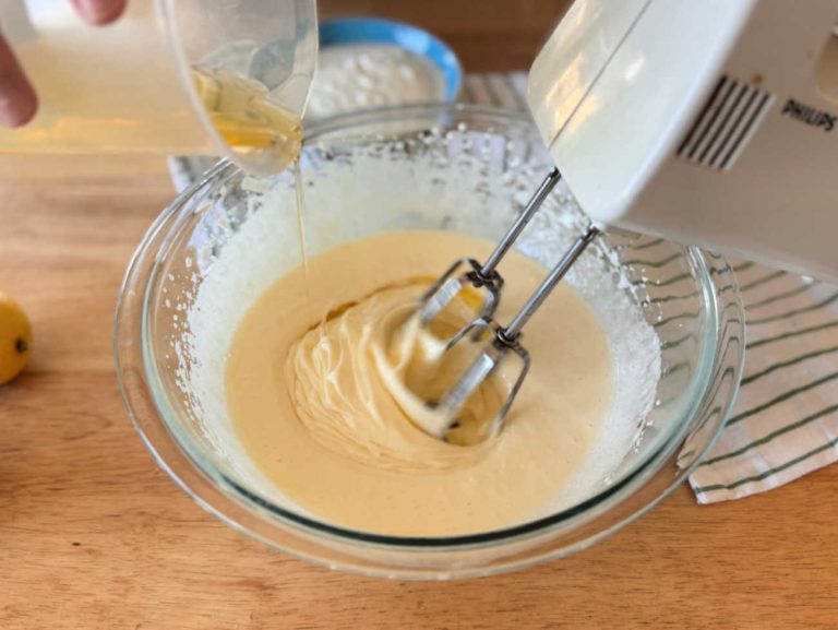 מיקסר – אני השתמשתי במיקסר ידני, זה היה לי הכי נוח. בהחלט אפשר גם להשתמש במיקסר שעומד על השיש ולהשתמש בוו בלון להקצפה. אם אין לכם מיקסר, אפשר גם להקציף את המרכיבים עם מטרפה, במקרה זה יש לטרוף את הביצים במרץ.