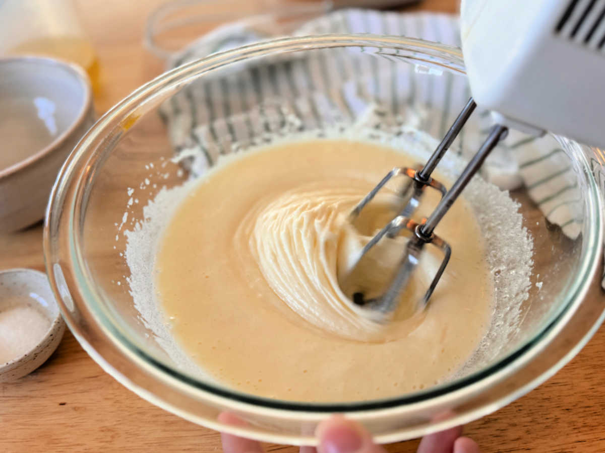 מיקסר – אני השתמשתי במיקסר ידני, זה היה לי הכי נוח. בהחלט אפשר גם להשתמש במיקסר שעומד על השיש ולהשתמש בוו בלון להקצפה. אם אין לכם מיקסר, אפשר גם להקציף את המרכיבים עם מטרפה, במקרה זה יש לטרוף את הביצים במרץ.