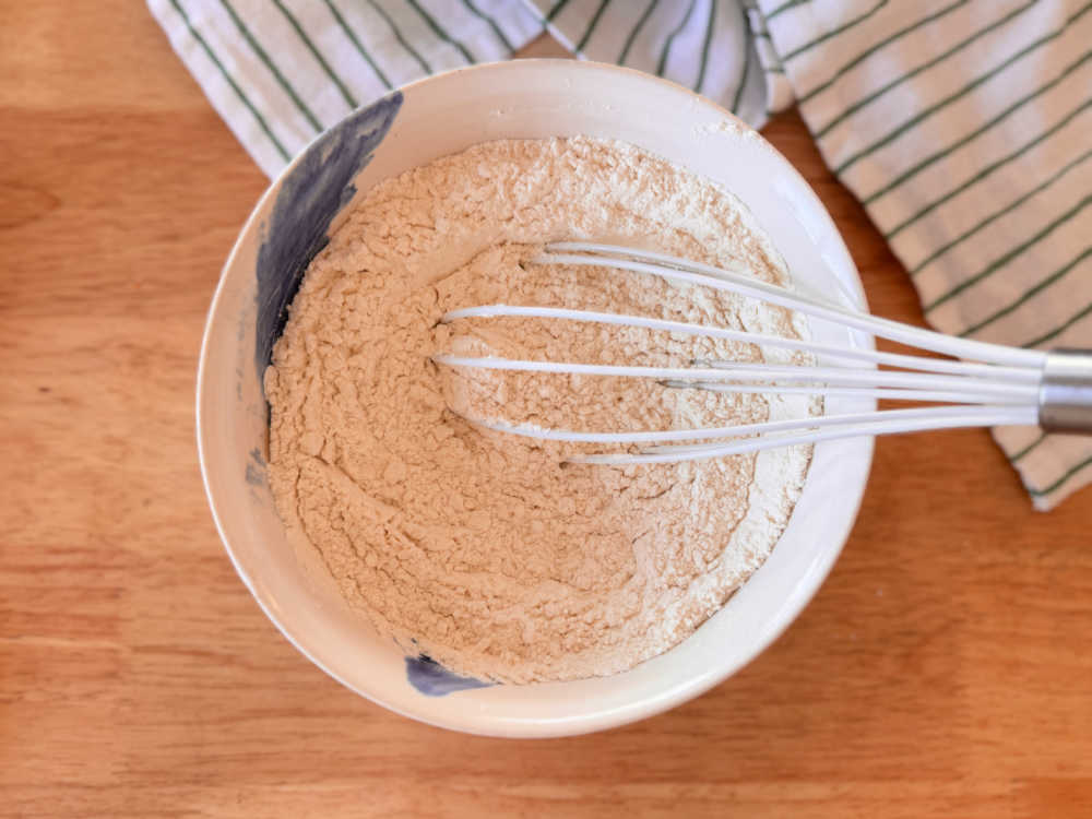 - בקערה נפרדת מערבבים את הקמח עם אבקת אפייה ומלח.