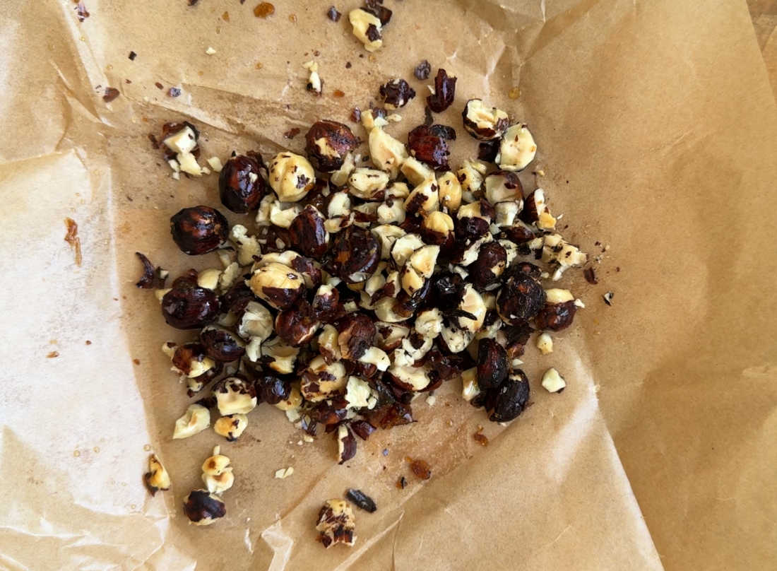 - במחבת, קולים את אגוזי הלוז על להבה גבוהה. מוסיפים שמן זית, מלח, מייפל וגרידת לימון. קולים תוך כדי ערבוב במשך דקה-שתיים. מעבירים לנייר אפייה.