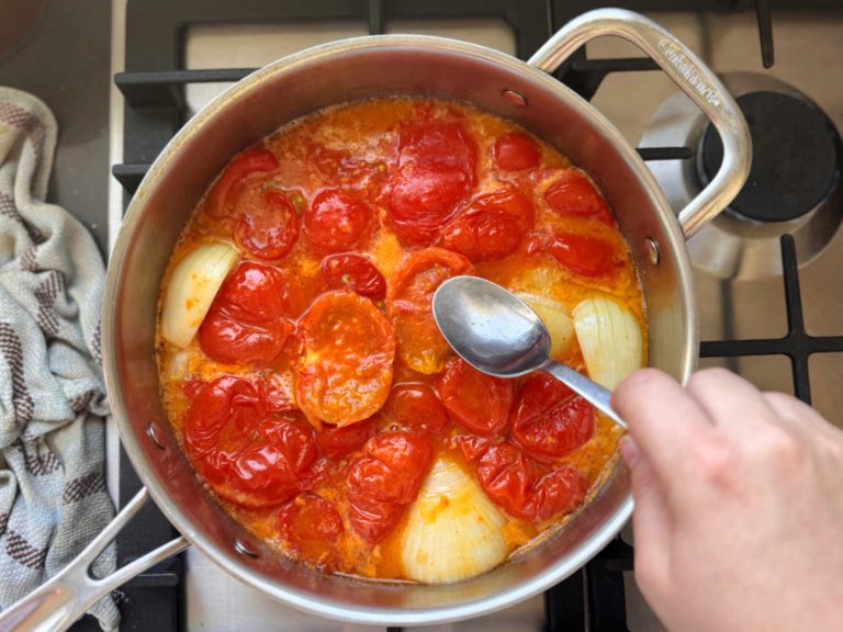המתכון הזה דורש אפס מיומנות בבישול, ומתאים במיוחד ״לשכוח״ על הכיריים, כי זמן הוא מרכיב הקסם פה. למרות שאתם בטח מתפתים להוסיף שום או בזיליקום (אני יודעת. גם אני התפתיתי), הרוטב הכי טעים כפי שהוא.