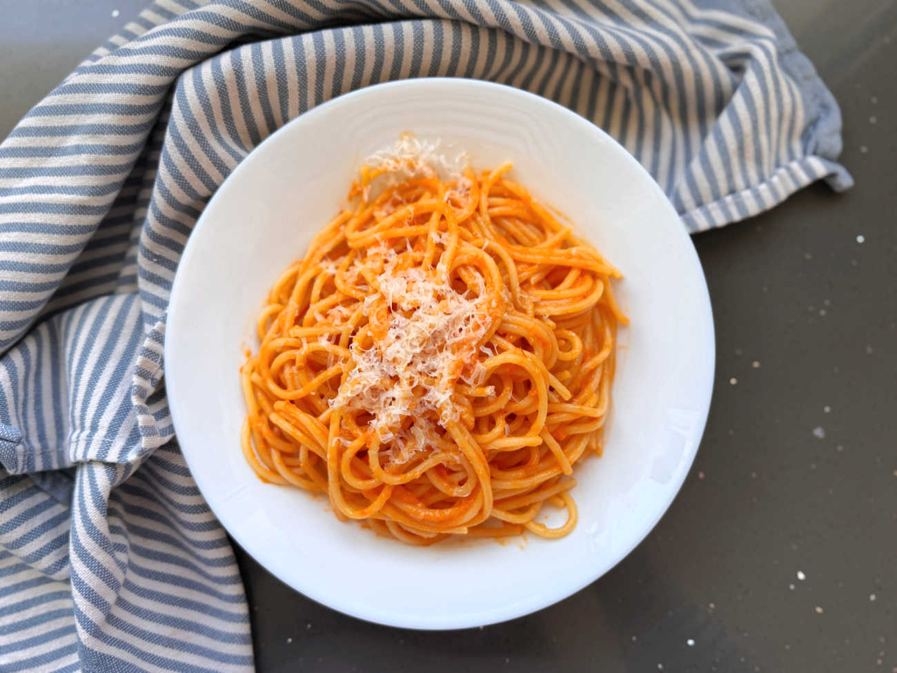 - מערבבים את הרוטב עם פסטה, ומגררים פרמז׳ן מעל. זהו! זהו!